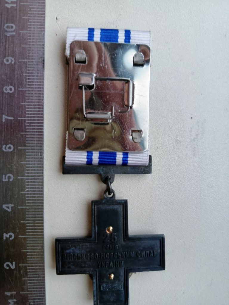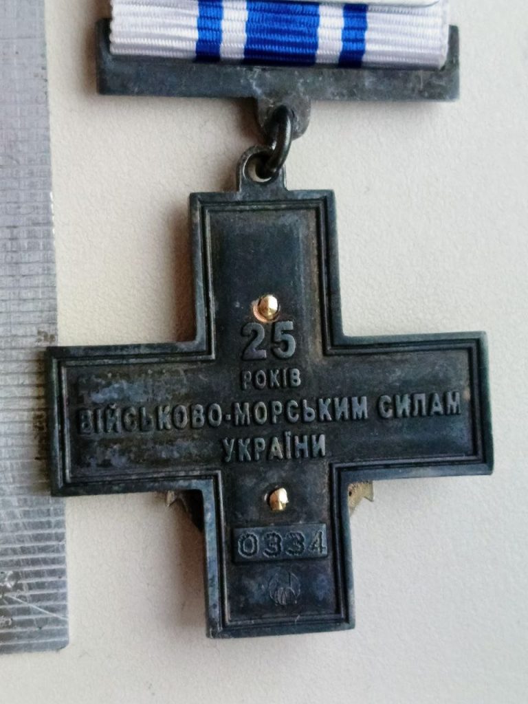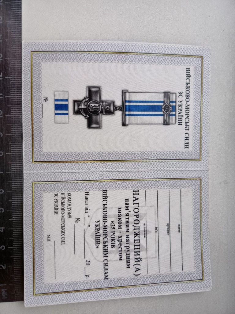 Хрест з посвідченням 25 РОКІВ ВІЙСЬКОВО МОРСЬКИХ СИЛ УКРАЇНИ