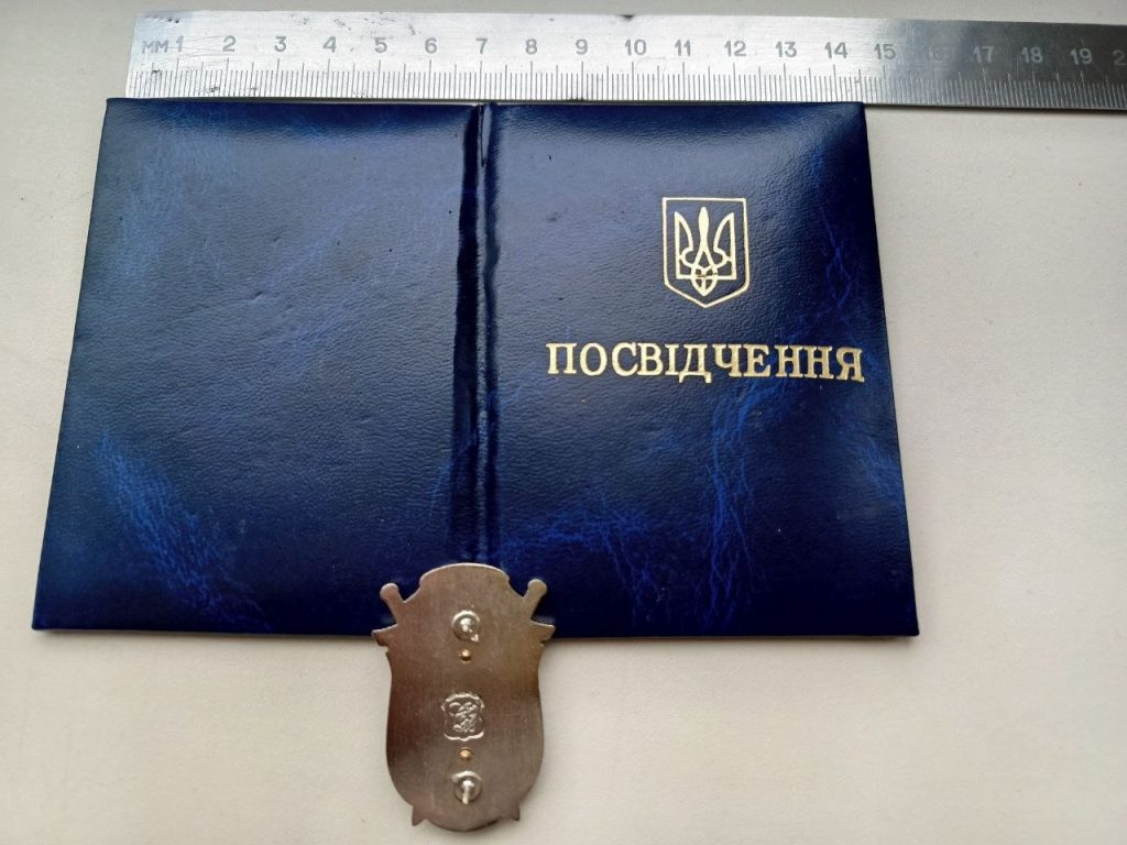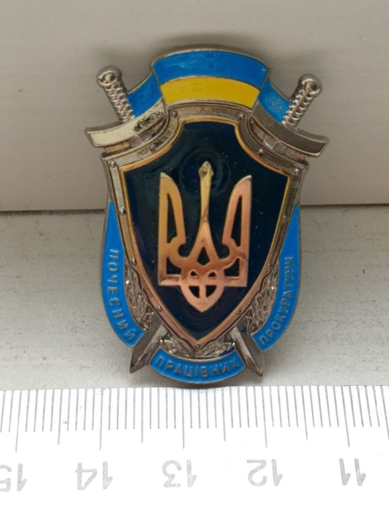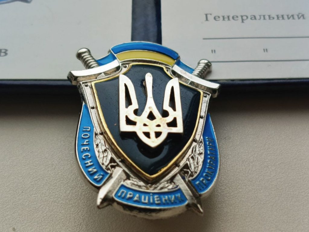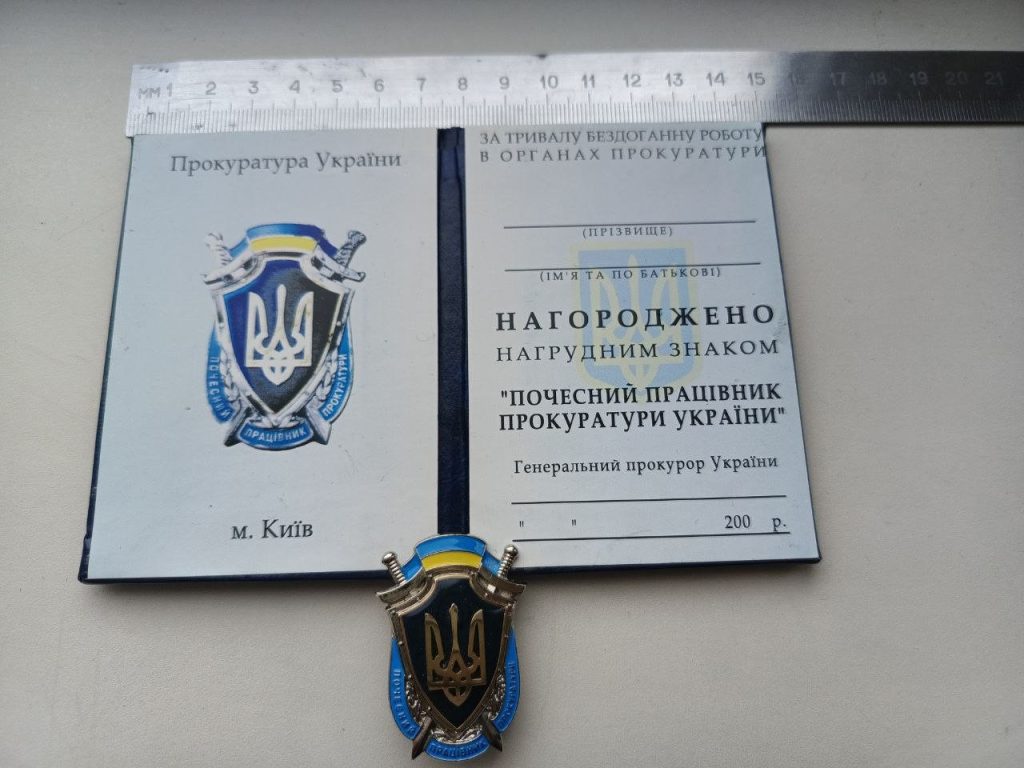 Нагрудний знак, почесний працівник прокуратури України, з незаповненим посвідченням