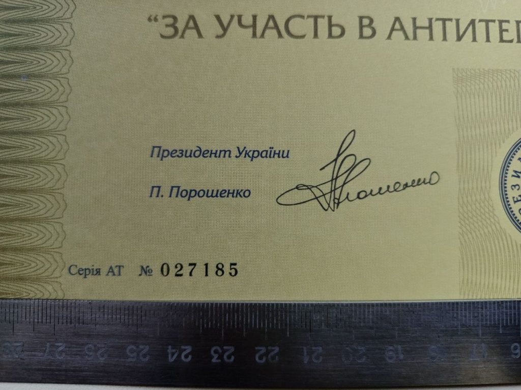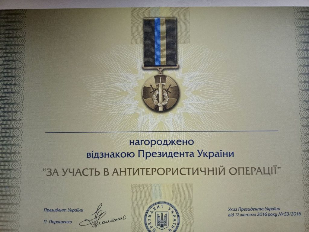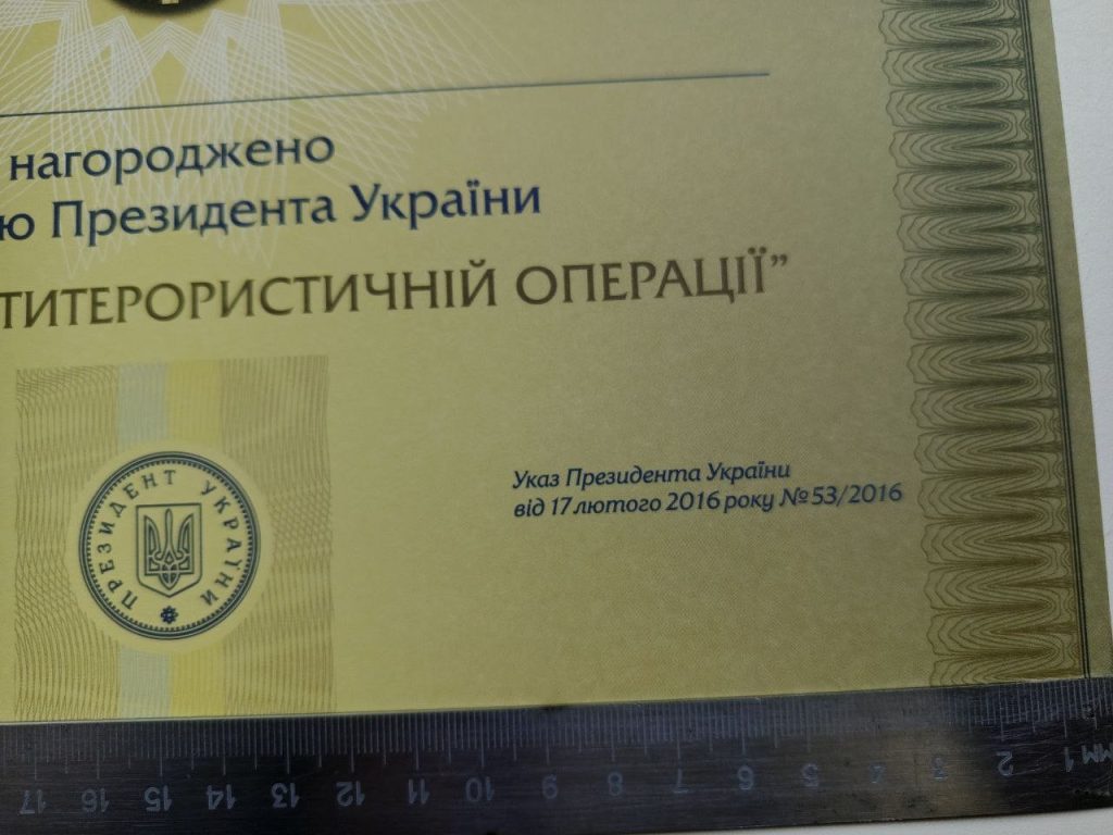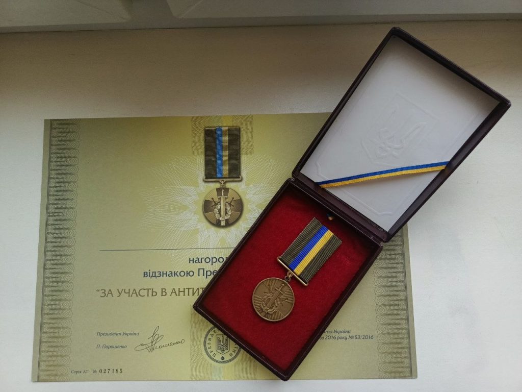 Відзнака Президента України «За участь в антитерористичній операції в футлярі, з посвідченням